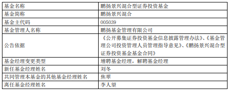 中國經(jīng)濟網(wǎng)北京12月30日訊近日,鵬揚基金公告,鵬揚景興混合增聘劉冬,李人望離任。